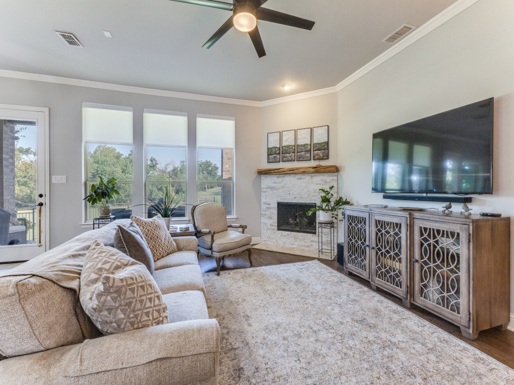 Discover inspiration and tranquility in your new home! Embrace an extraordinary lifestyle in this perfectly designed Woodbridge residence ideally located on the golf course and tucked in a peaceful cul-de-sac. Imagine quality time with loved ones in one of the several living rooms, recharging in one of the ample bedrooms, working productively in your creative office space, indulging in your favorite hobbies in the bonus hobby nook or 3 car garage, or creating culinary masterpieces in the stunning kitchen. Charming, elegant, and exceptionally functional, this home offers everything you need to thrive! Step into the expansive backyard, where a breathtaking view of the golf course meets meticulously manicured lawns, providing a peaceful oasis for relaxation and enjoyment. Make this wonderful home your sanctuary and live your best life!
